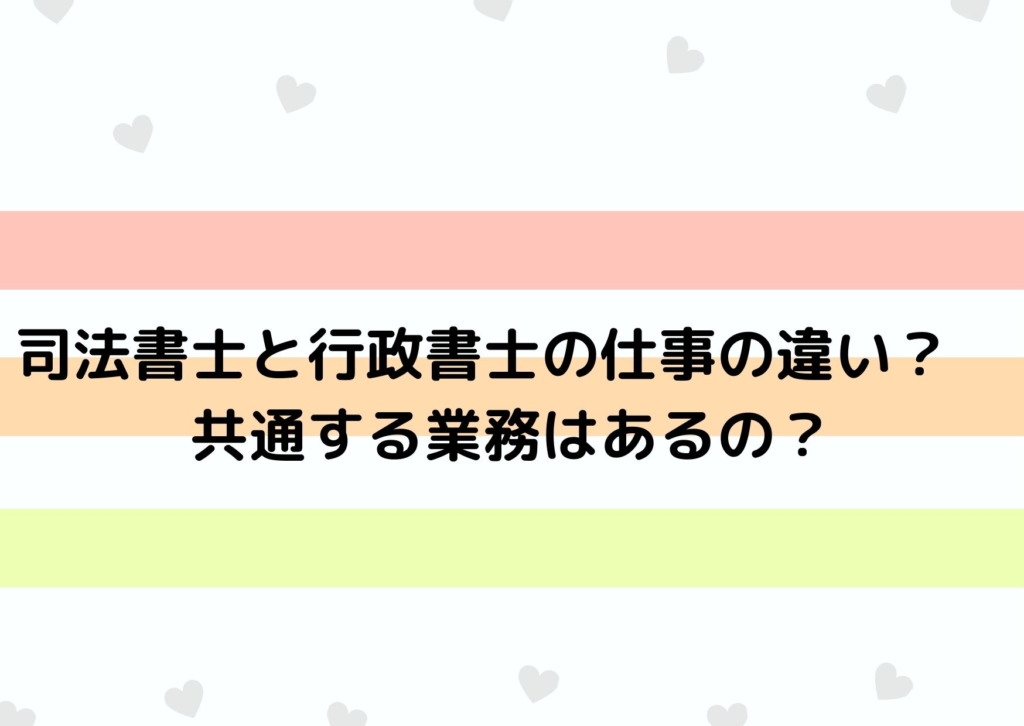 司法書士と行政書士の仕事の違いは?共通する業務はあるの?司法書士事務所で仕事をしていると必ず聞かれるのが、行政書士と何が違うの?という質問です。行政書士と司法書士の業務は違います。作成する書類も違いますし、提出先の官庁も全然違うんです!昔「カバチタレ」というドマラがあったのをご存知ですか?常...